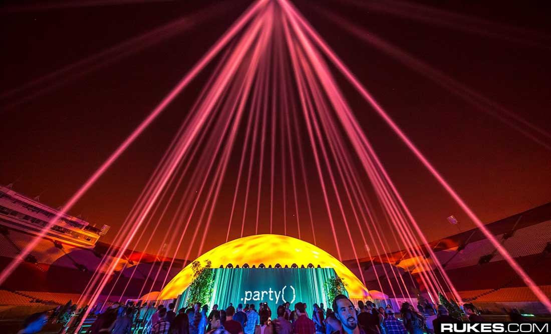 Video projection, laser and lighting effects for a massive display that commands attention and dominates the landscape with 360 video screen on the world’s largest projection dome.